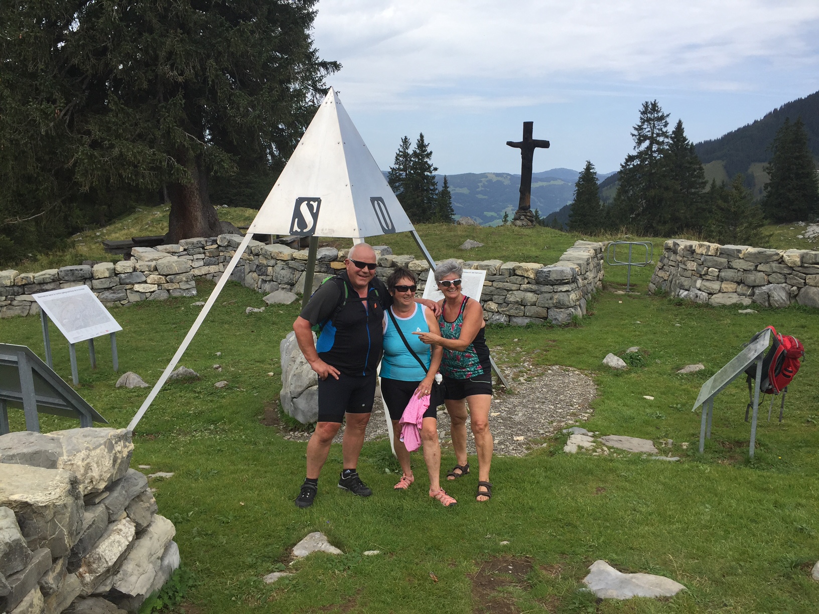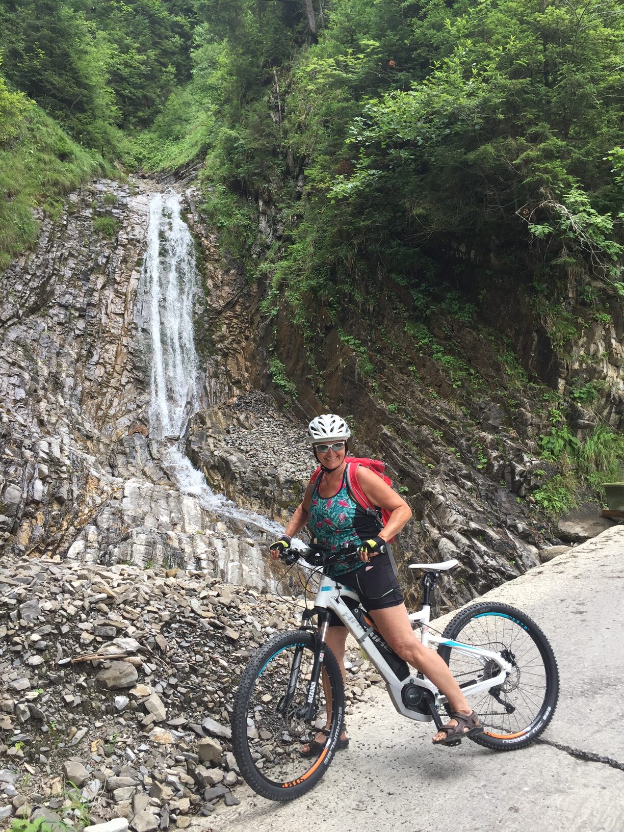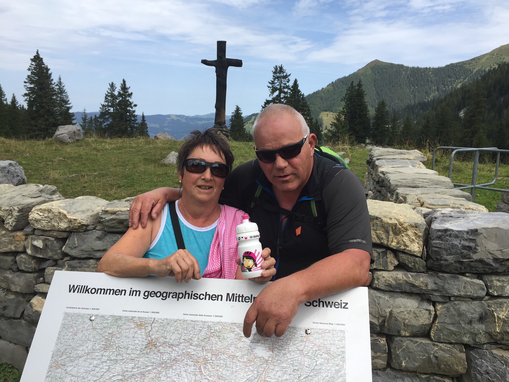 Wir liessen uns nichts anmerken und schon gings los. Von 480 müM. auf 1645 müM. Ich kann euch nur sagen, es war steil, teilweise brutal steil. Am schlimmsten waren die Autos die auf der schmalen Strasse überholten, klar die konnten nicht so langsam fahren ohne das sie in Schwierigkeiten kamen. Einmal mussten wir wegen einem Auto absteigen, Vreni konnte ich gerade so anschieben und mir ist das Anfahren auch gelungen. Ja, es gab sie auch die jungen wilden mit Bike’s ohne Motor. Es gab aber auch diese die ihre Bike’s geschoben haben, vor allem das Paar aus dem Welschland, sie hat sich vor lauter Anstrengung fast ausgezogen.