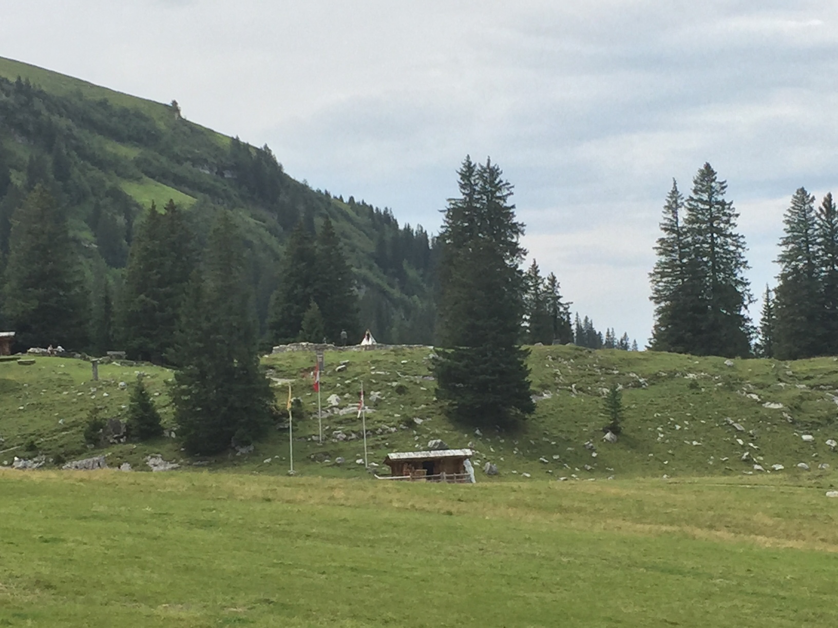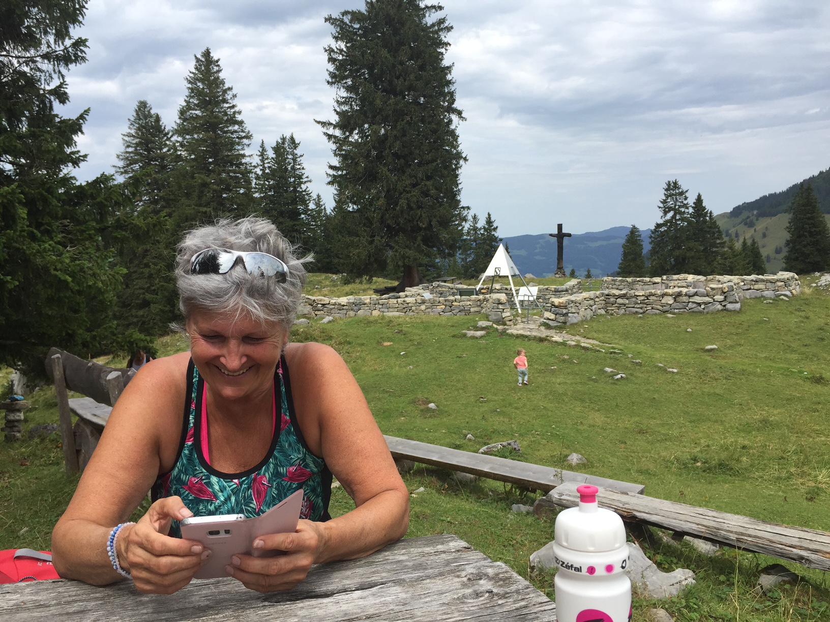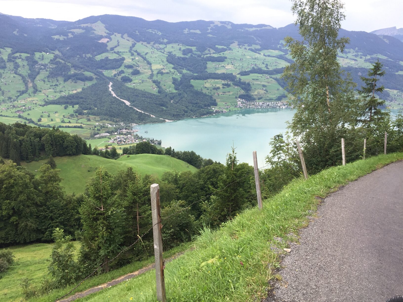 Wir liessen uns nichts anmerken und schon gings los. Von 480 müM. auf 1645 müM. Ich kann euch nur sagen, es war steil, teilweise brutal steil. Am schlimmsten waren die Autos die auf der schmalen Strasse überholten, klar die konnten nicht so langsam fahren ohne das sie in Schwierigkeiten kamen. Einmal mussten wir wegen einem Auto absteigen, Vreni konnte ich gerade so anschieben und mir ist das Anfahren auch gelungen. Ja, es gab sie auch die jungen wilden mit Bike’s ohne Motor. Es gab aber auch diese die ihre Bike’s geschoben haben, vor allem das Paar aus dem Welschland, sie hat sich vor lauter Anstrengung fast ausgezogen.