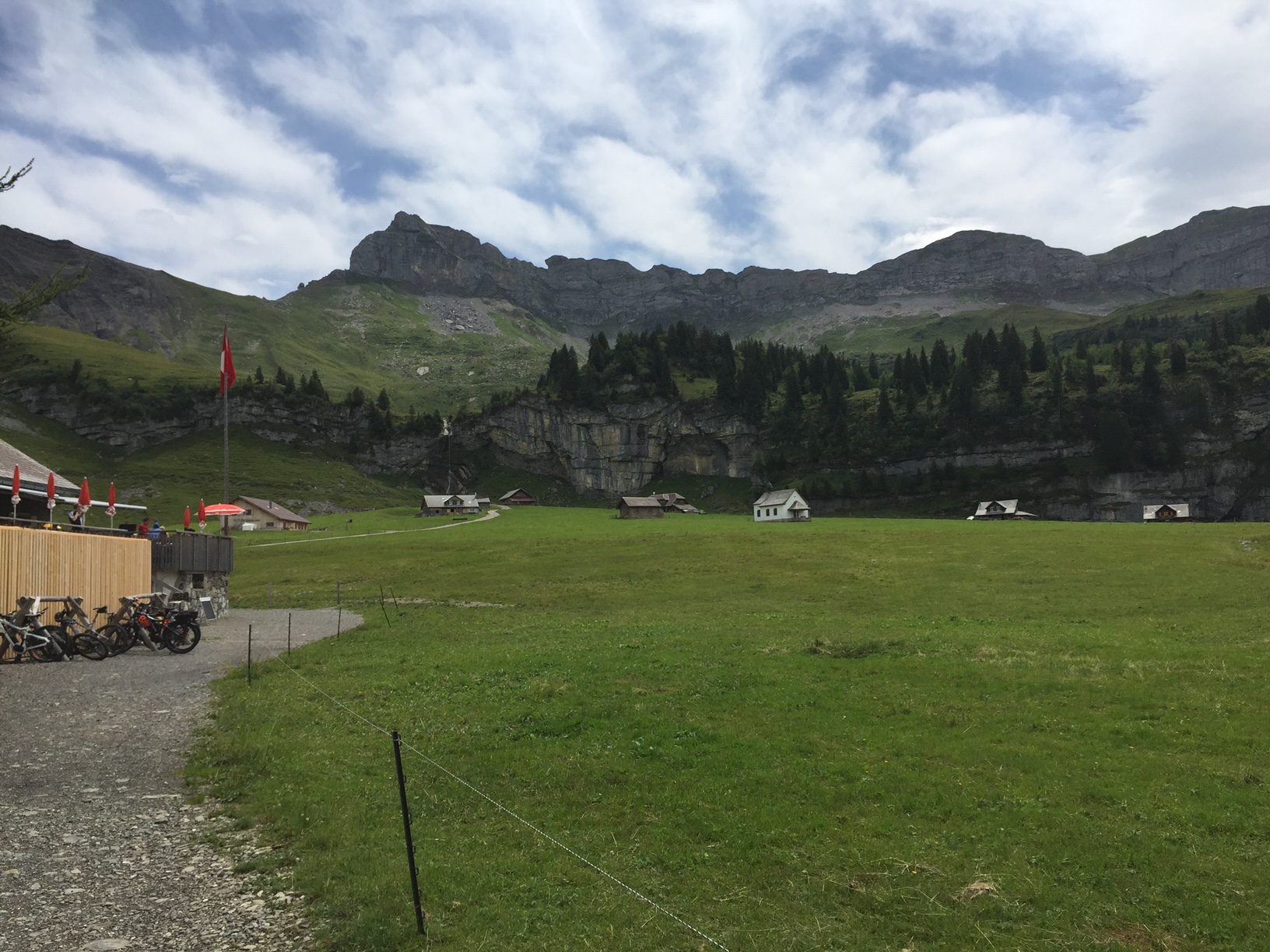 Es gibt so Tage wo man meint man könne Berge versetzen. Obwohl der Wetterbericht gutes Wetter vorsah, schüttete es in strömen. Wir entschlossen uns gleichwohl die Rote anzugehen. Bike’s aufladen und ab Richtung Luzern, und siehe da? Kaum am Lopper, gibt es schönes Wetter. In Sachseln angekommen steuern wir auf den Parkplatz vom Gasthaus Engel. Kaffee und Gipfeli sind angesagt. Wir fragen noch den Wirt ob wir das Auto stehen lassen können. Als wir im erzählen wo wir hinfahren wollen, war er ein bisschen besorgt.