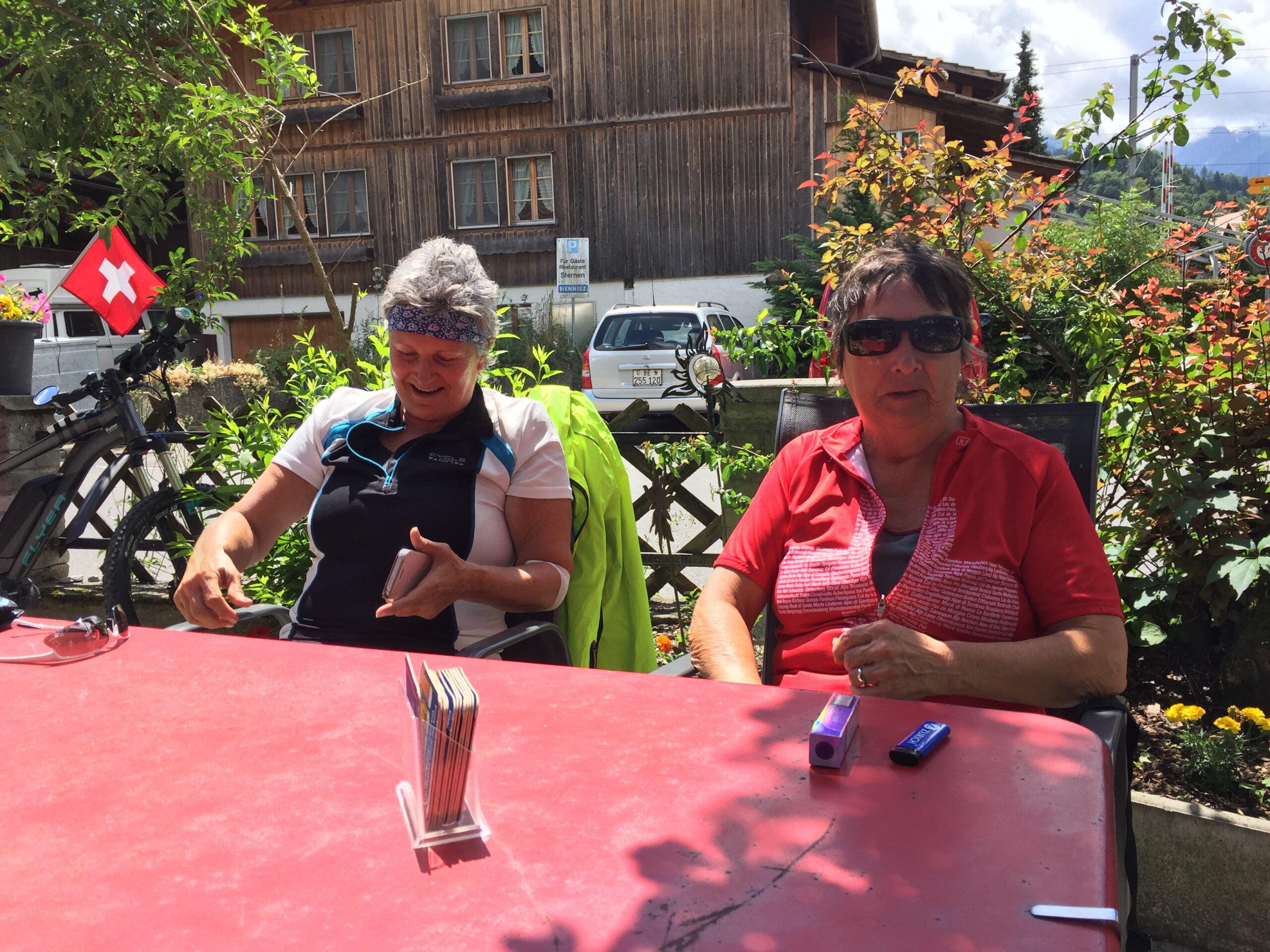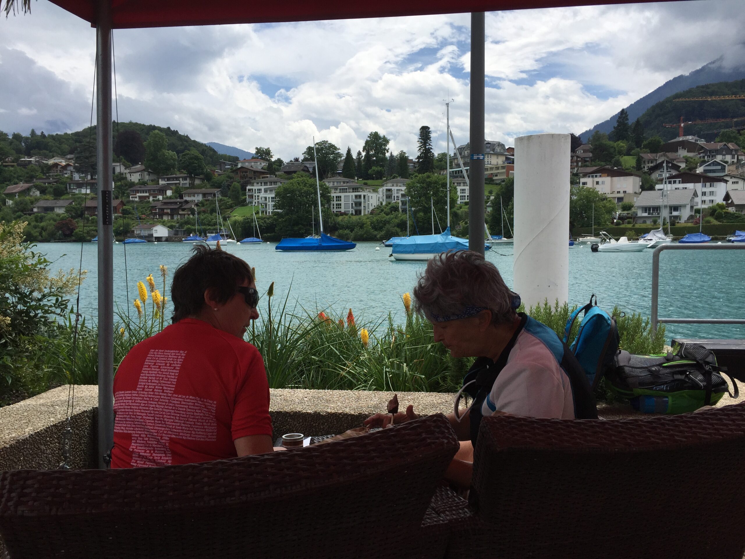 Dann ein grosser Schock, als Thesi kaum noch reden konnte weil sie von einer Wespe in die Zunge gestochen wurde. So ruhig habe ich sie noch nie erlebt. Notfallmässig mussten wir einen Arzt aufsuchen. Dieser reagierte blitzschnell und Thesi bekam ein Infusion. Nach einer Stunde war die Aktion beendet und wir könnten weiter fahren bis nach Spiez.