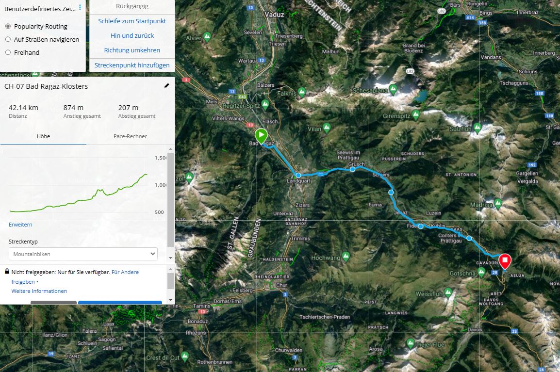 Dann gings der Landquart entlang auf Nebenstrassen bis nach Klosters. Teilweise hat es giftige Rampen dabei, mit dem Ebike sind sie aber zu machen.