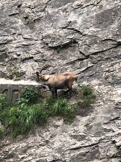 So, nun ging es richtig los. Das es dies schönste Tour wird die wir bis jetzt gemacht haben, war nicht voraus zu sehen. Durch die Weinberge von Maienfeld und Jenins ging es an die Landquart. Als wir in die Schlucht hereinfuhren sahen wir diesen Gemsbock an der fast senkrechten Wand stehen, ist scheinbar eine Attraktion und ist dort sehr oft anzutreffen.